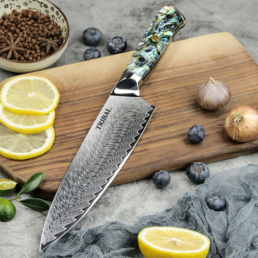 TRIBAL ABALONE HANDLE DAMASCUS STEEL 5 PCS SET
