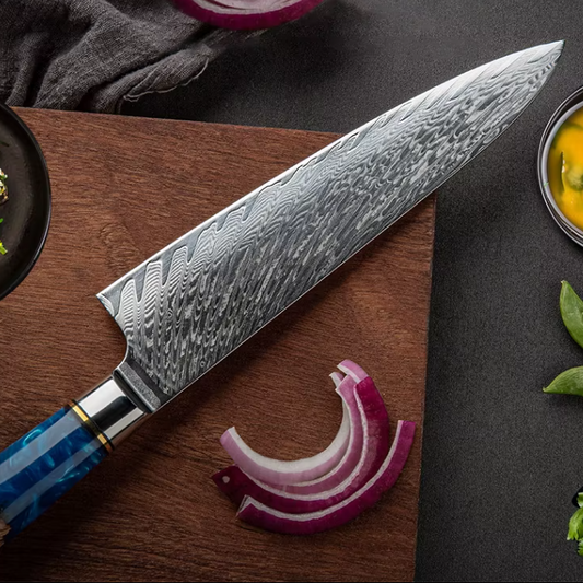 TRIBAL BLUE RESIN DAMASCUS KNIFE SET