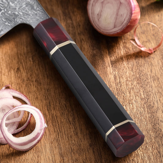 TRIBAL RED & BLACK RESIN DAMASCUS CHEF KNIFE