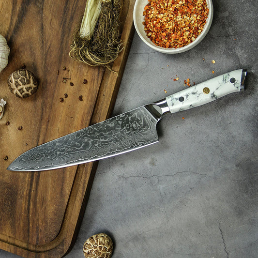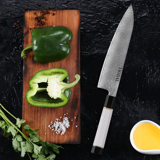 TRIBAL HEXAGON WHITE DAMASCUS CHEF KNIFE
