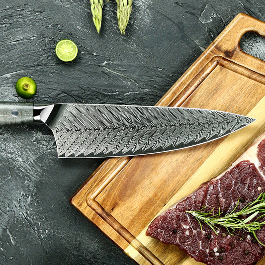 TRIBAL DAMASCUS OLIVE WOOD HANDLE CHEF KNIFE